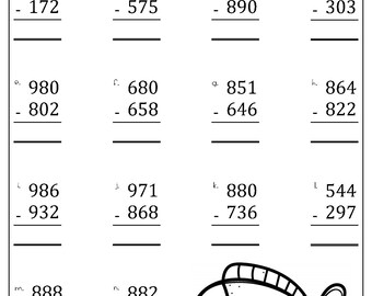 Three-digit Subtraction Worksheets With Regrouping - MomJunction Math Print Download Three-digit Subtraction Worksheets With Regrouping This subtraction worksheet will train your students to solve the three-digit math subtraction equations. All the problems require regrouping and make the child think the logic behind the concept. You can use this worksheet for practice at school or home.